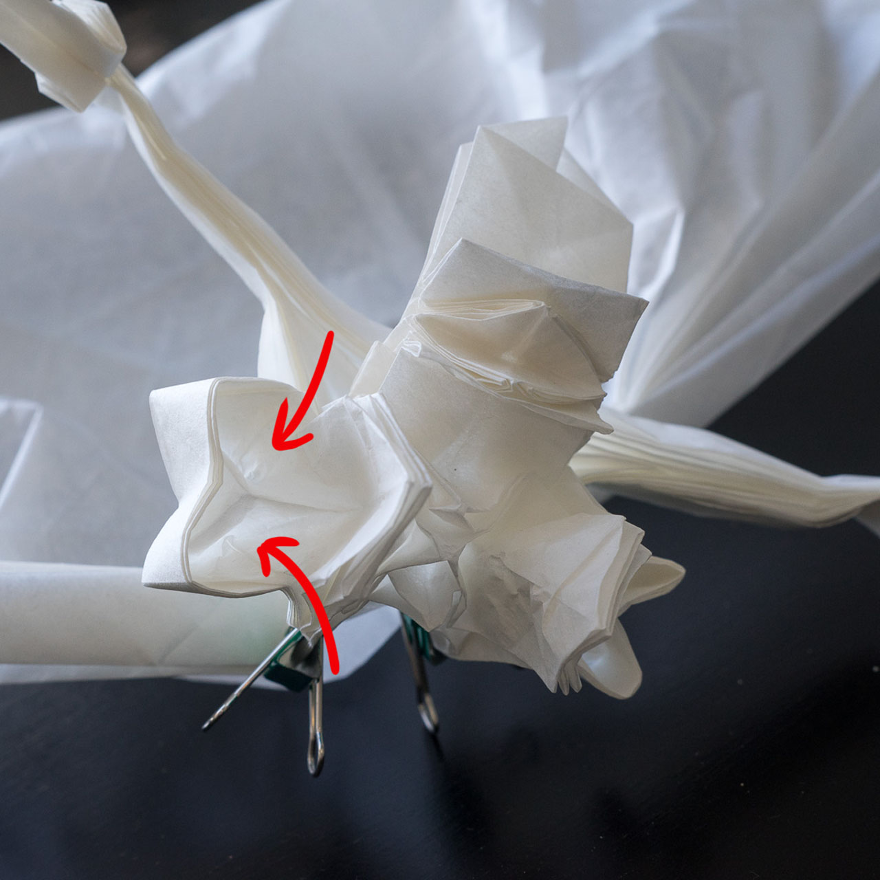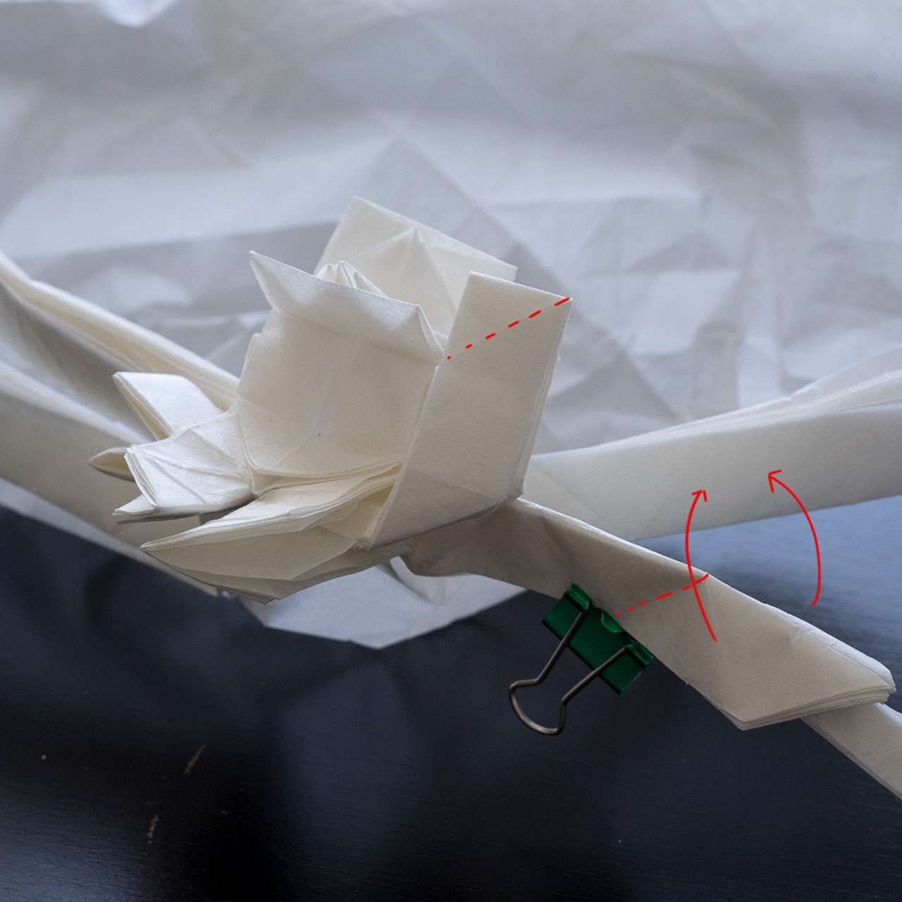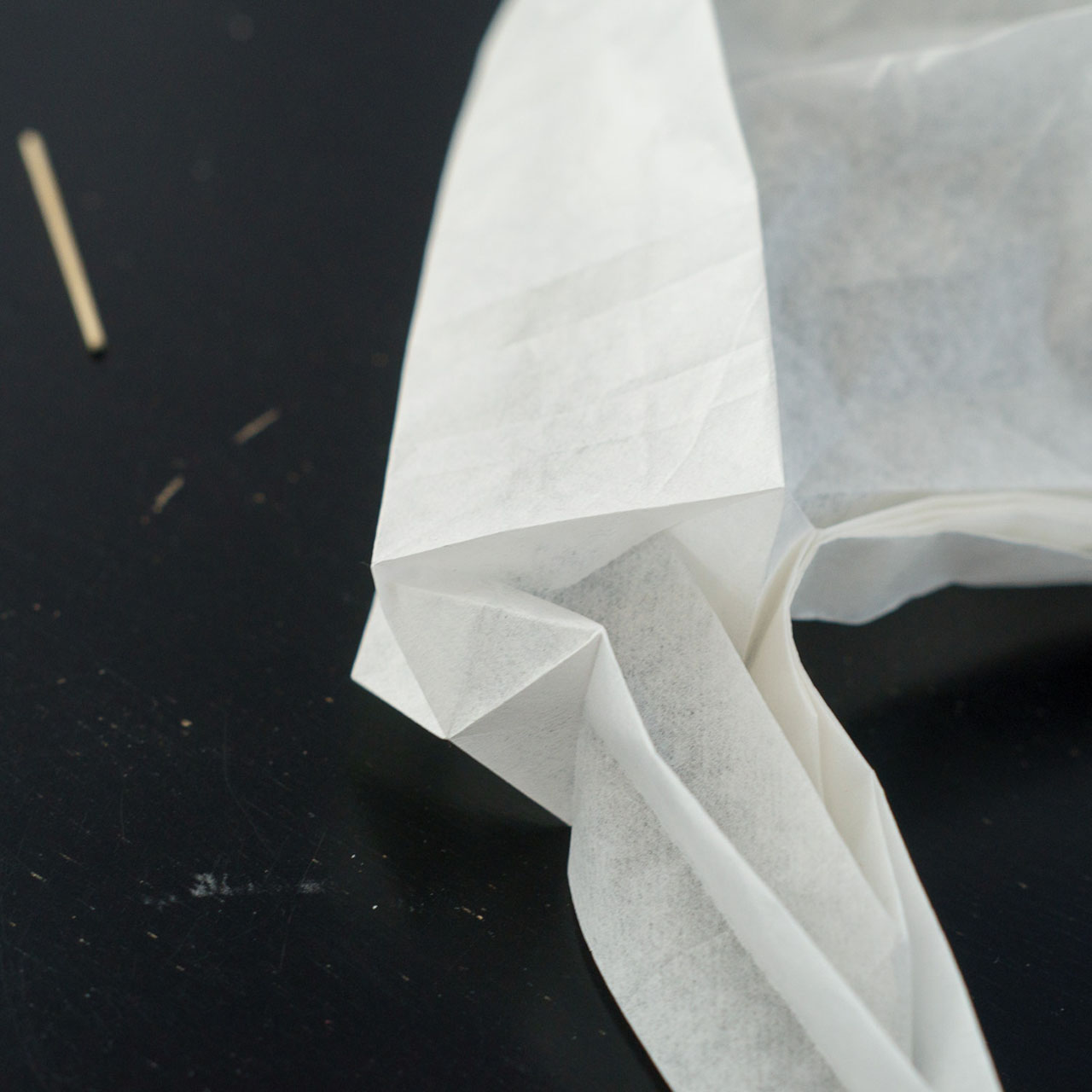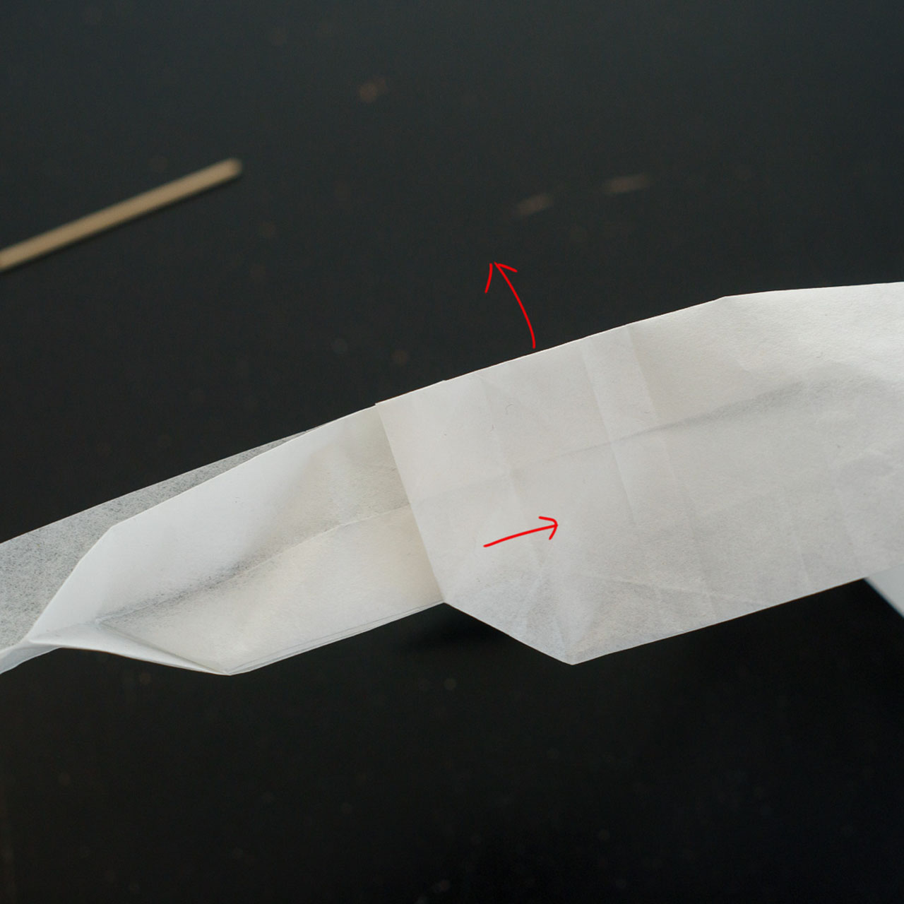 For the skirt, you spread the layers and shape it to sit with the leg. Be careful with the edge layer, it will be very stressed. I left it open for the rest of the folding process to prevent ripping.