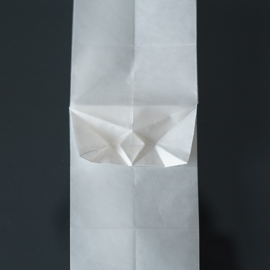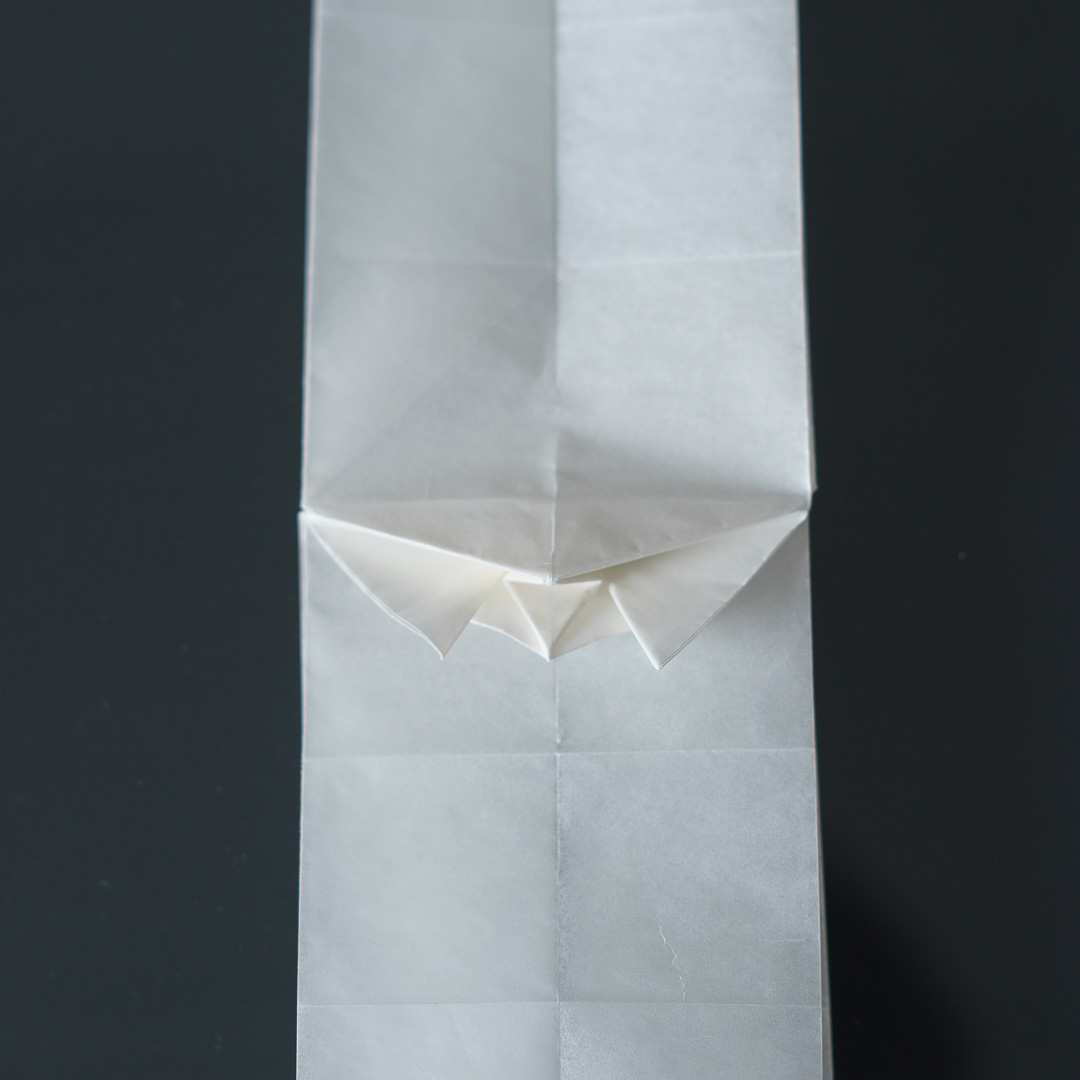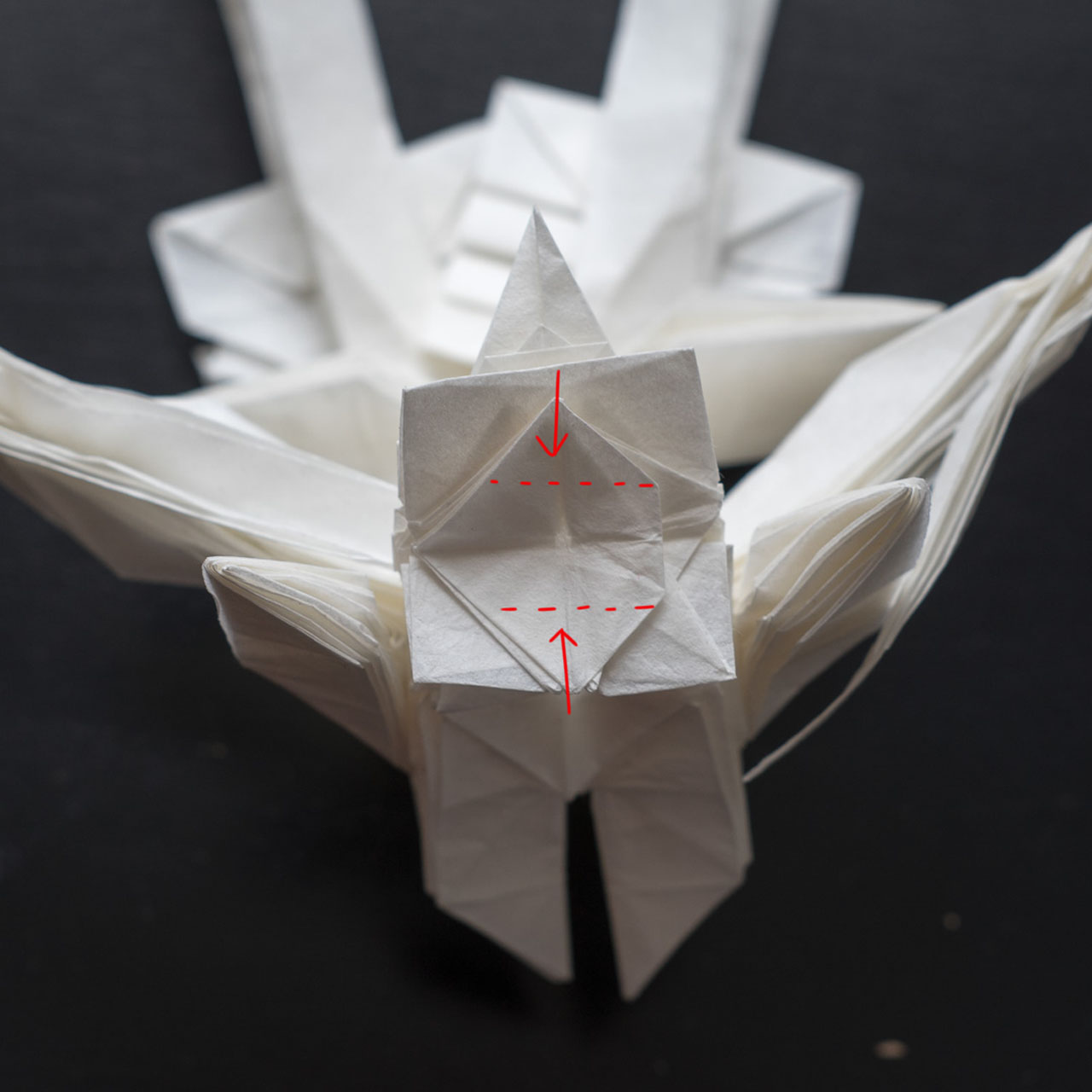 I forgot to document the creation of the eyes, but I redid it on a different sheet. On the flap for the eyes, fold these precreases.