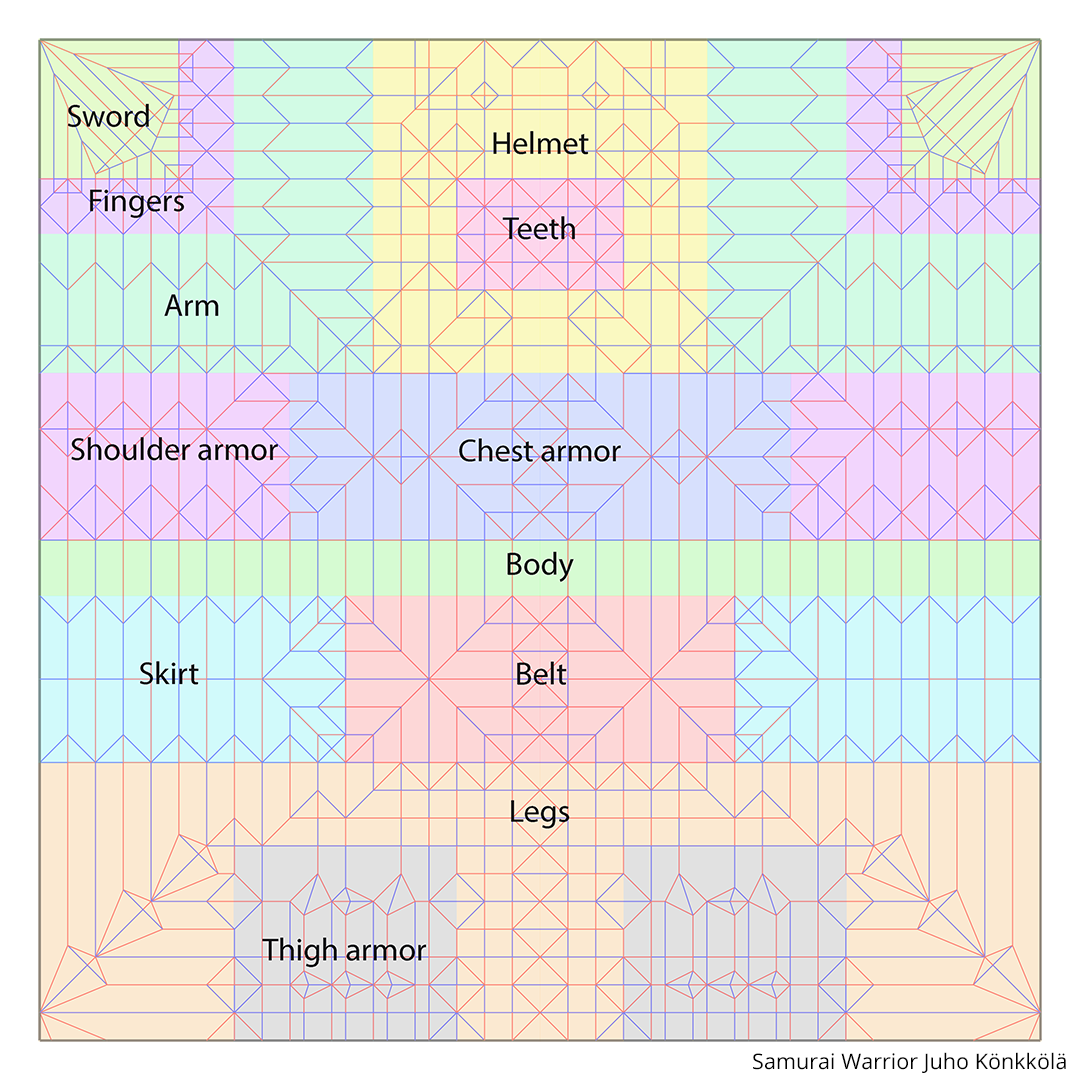 This will be a short walkthrough of my folding process for the Samurai Warrior. This design is quite advanced, even though it doesn’t use dense grid. I wouldn’t recommend to try this, if you don’t know how to read complex crease patterns.